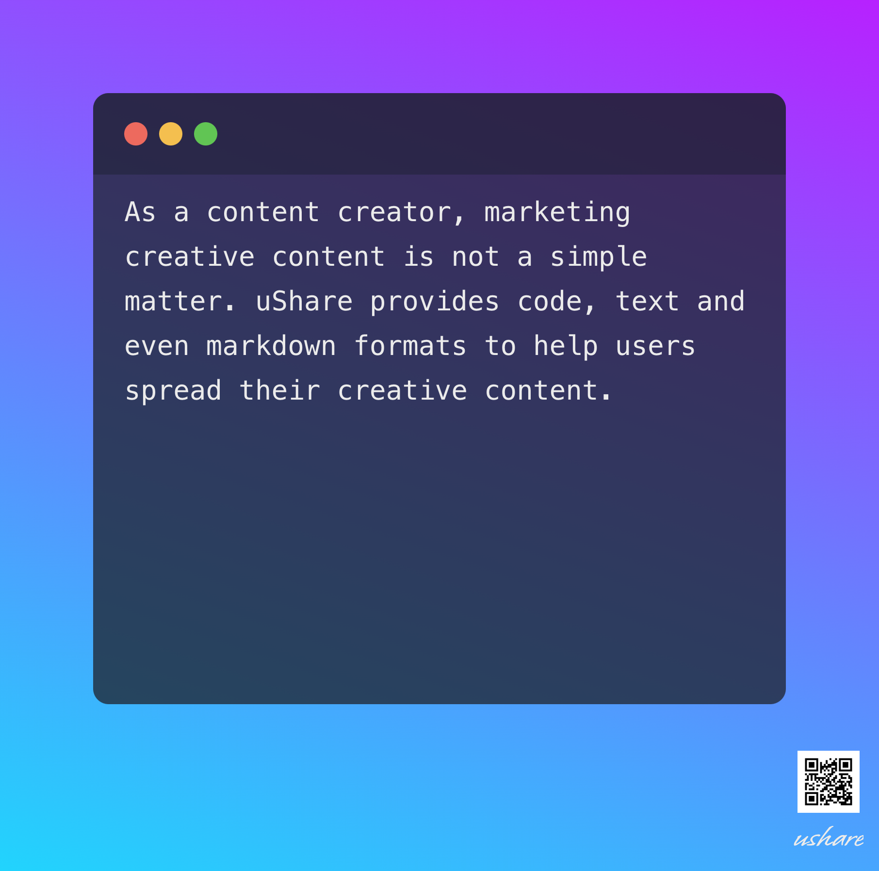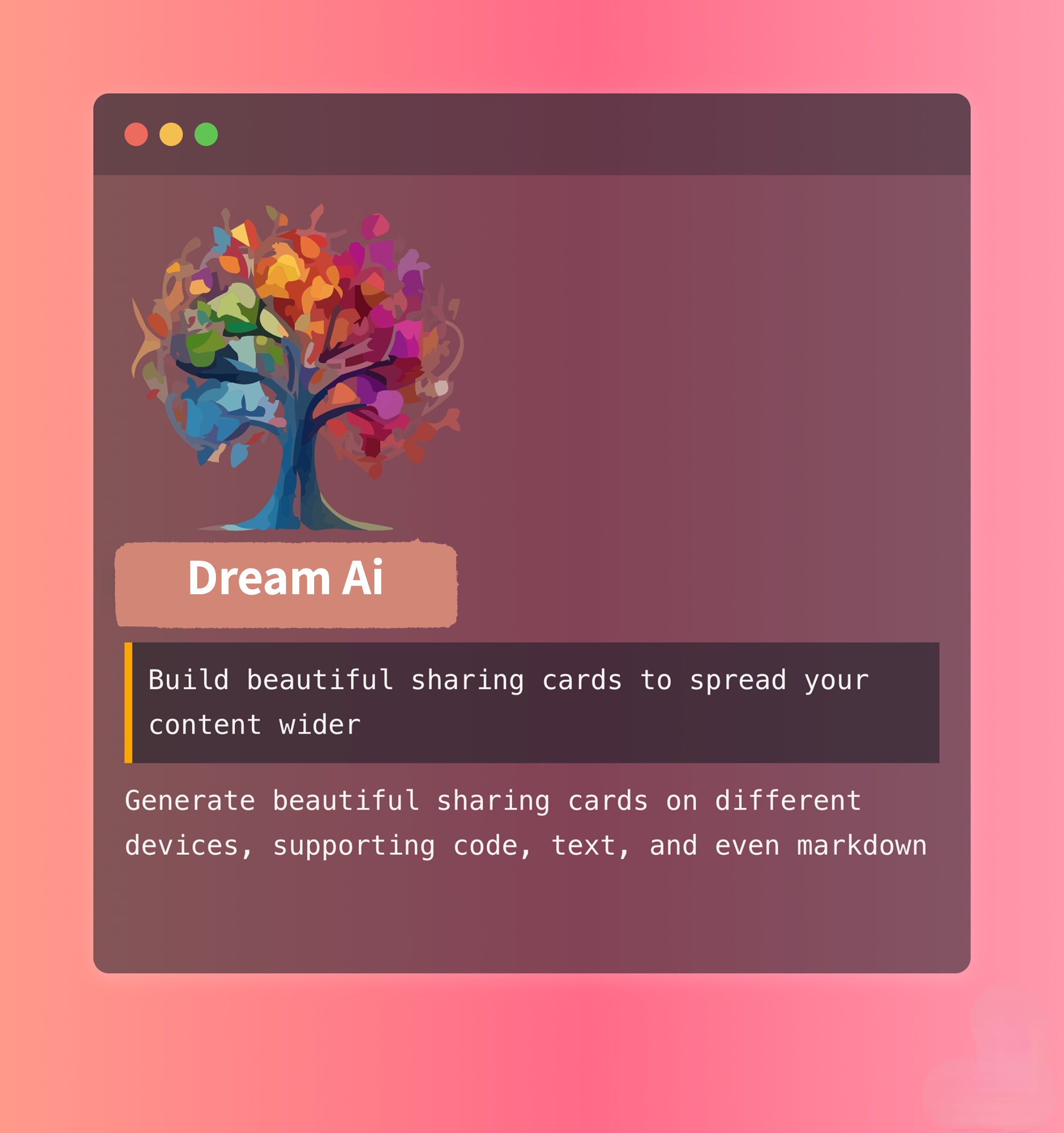 Just discovered DreamLate and it's a game-changer! Building stunning sharing cards for my content has never been easier. The versatility to support code, text, and markdown is fantastic. Highly recommend!